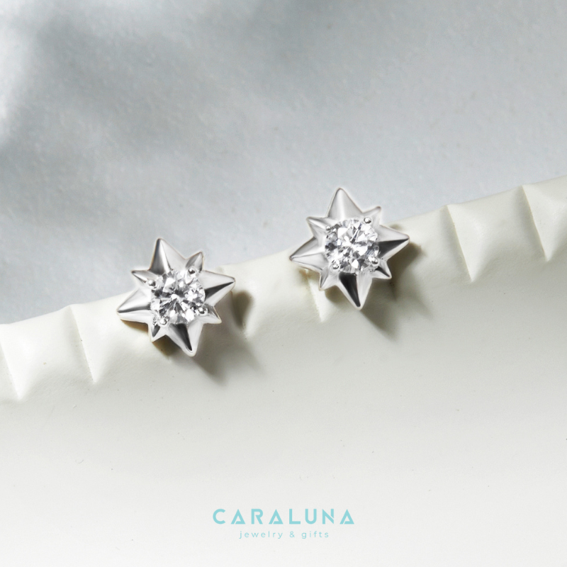 Dáng nụ - basic stud earrings; mặt khuyên hình sao gắn 1 viên đá chủ CZ trắng; khóa đẩy push back chắc chắn |