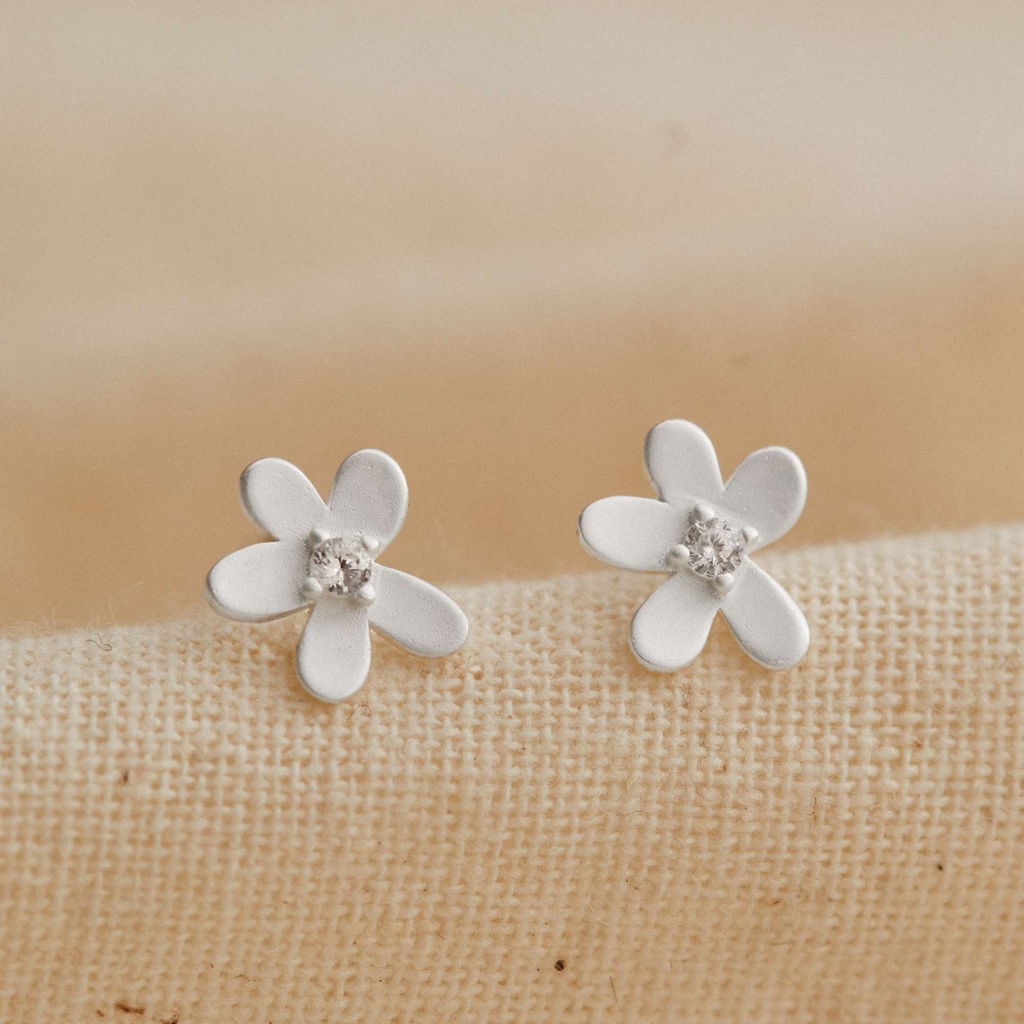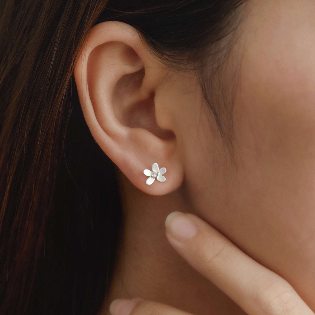 THÔNG TIN (1 CÁI) KHUYÊN TAI BẠC 925 FLAT BACK HOA 5 CÁNH NỤ ĐÍNH ĐÁ