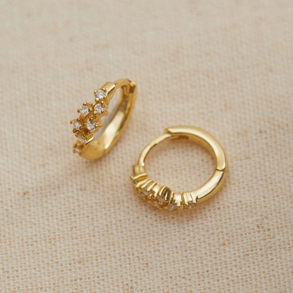 Từ nền vàng ấm của hoop Bạc 925, những viên đá nhỏ như nụ hoa vừa hé, tụ lại thành một nhánh sáng nhỏ ôm lấy vành tai. Sự sắp đặt “ngẫu hứng mà có chủ đích” khiến khuyên trông sống động, giống một mẩu hoa mang theo cả hơi thở mềm mại. Nhờ cảm giác nhẹ và uyển chuyển ấy, mẫu này hợp với nàng thích phong cách nữ tính nhưng phóng khoáng, dễ phối cùng hoop trơn hoặc nụ đá để layering tinh tế trong mọi buổi cafe, hẹn hò hay ngày thường.