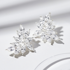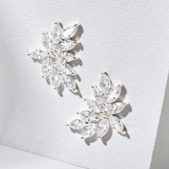 Khuyên tai nụ đính đá hạt thóc CZ trắng dáng cánh hoa cong |