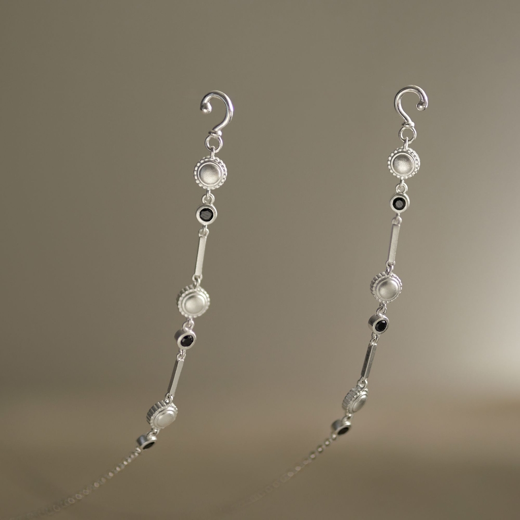 Thiết kế charm kính Chain Đeo Cổ Hoa Hướng Dương được làm từ bạc sterling 925 cao cấp, dạng dây dài treo để gắn vào gọng kính. Mỗi charm bao gồm các bông hoa hướng dương chạm khắc hoa văn tinh tế, xen kẽ với đá đen lấp lánh, tạo sự tương phản sang trọng. Phần móc treo chắc chắn, mang lại vẻ đẹp thanh lịch và hiện đại khi đeo trên kính. |