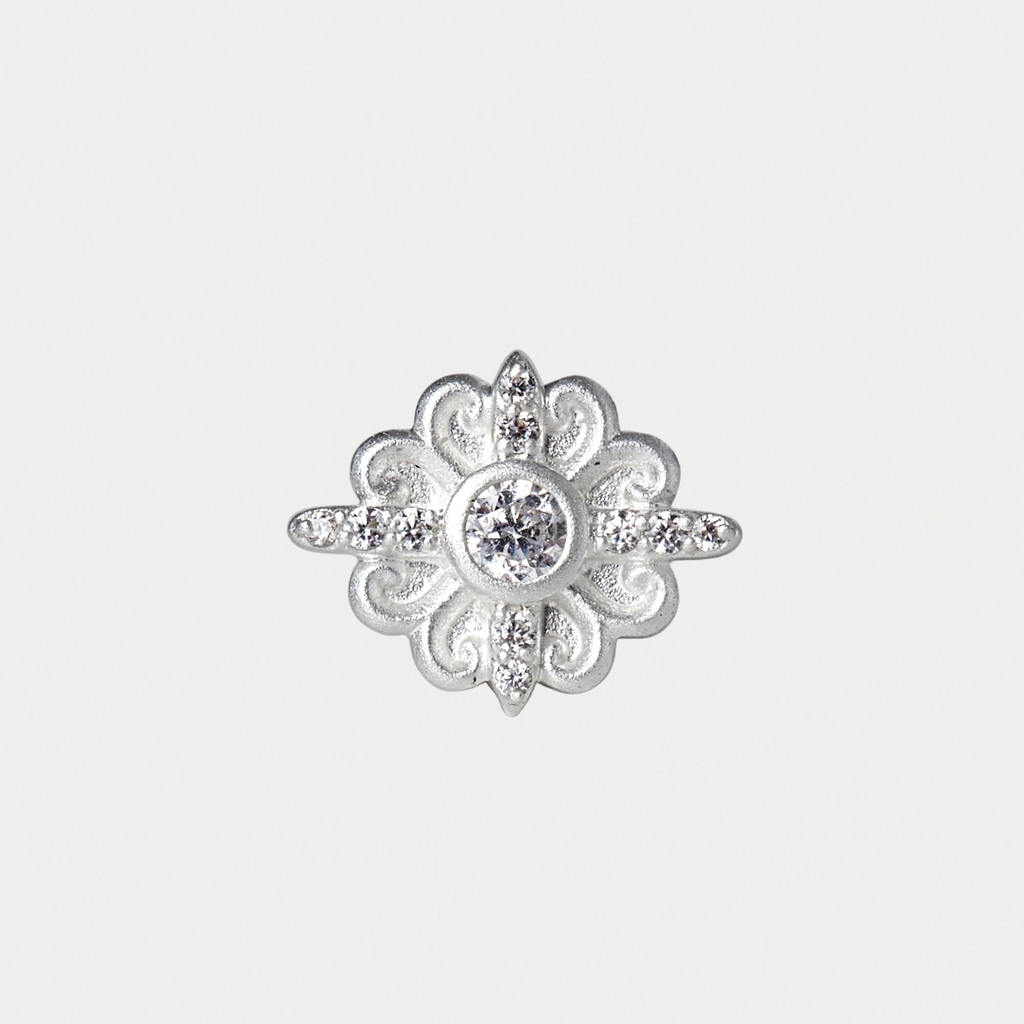 Charm kính bạc 925 Họa Tiết Gạch Bông Hình Tròn Classic Motif VKC15 là sáng tạo tinh tế từ Cara Luna, chế tác thủ công từ bạc sterling 925 cao cấp, an toàn cho da. Thiết kế hình tròn gợi nhớ họa tiết gạch bông truyền thống, khơi gợi hoài niệm tuổi thơ nhưng vẫn giữ được nét hiện đại thanh lịch. Trung tâm charm được điểm xuyết viên đá CZ lấp lánh, phản chiếu ánh sáng sống động, mang lại chiều sâu sang trọng. Kết nối bằng móc treo chắc chắn, dễ gắn vào gọng kính mà không gây cấn. Tổng thể thiết kế cân đối, vừa hoài cổ vừa tinh giản, lý tưởng làm phụ kiện tinh tế cho cả ngày thường lẫn những dịp đặc biệt. |