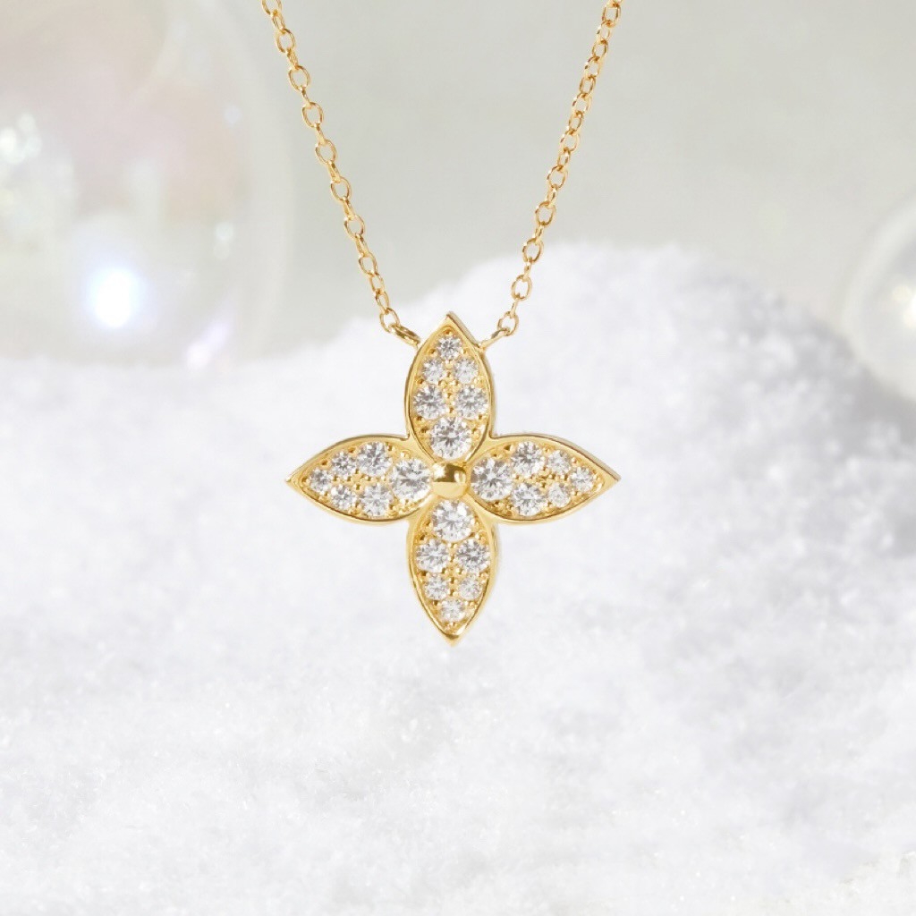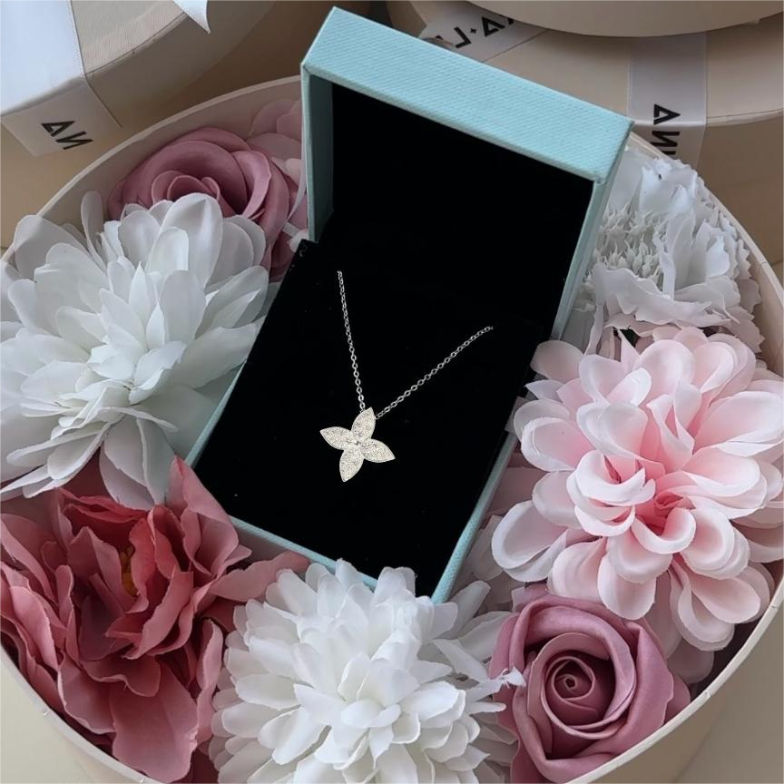 Thiết kế thanh mảnh với dây xích nhỏ, nổi bật bởi mặt dây hình cỏ 4 lá to bản đính full đá CZ lấp lánh, tạo hiệu ứng sang trọng. Kiểu dáng hiện đại, cân đối, mang lại vẻ nổi bật và tinh tế, phù hợp để tôn lên phong cách quyến rũ. |