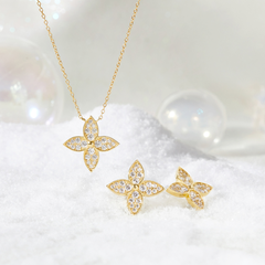 Dây chuyền gắn mặt charm - pendant necklace; hình hoa 4 cánh đính đá CZ trắng; 5cm dây phụ giúp tùy chỉnh size |
