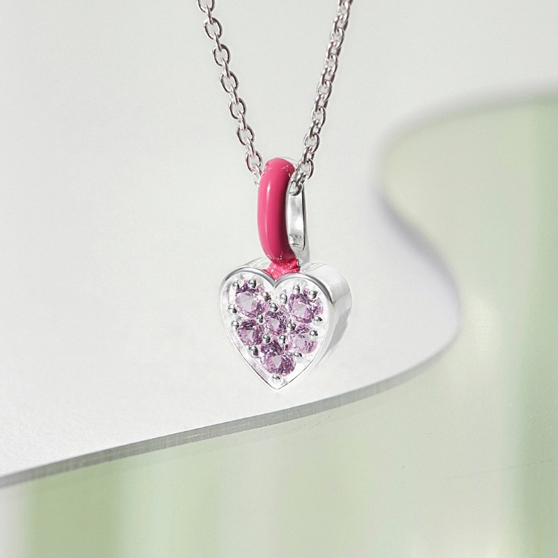 Dây chuyền gắn mặt charm tam giác đính 6 viên đá CZ hồng viền tráng men enamel công nghệ Ý |