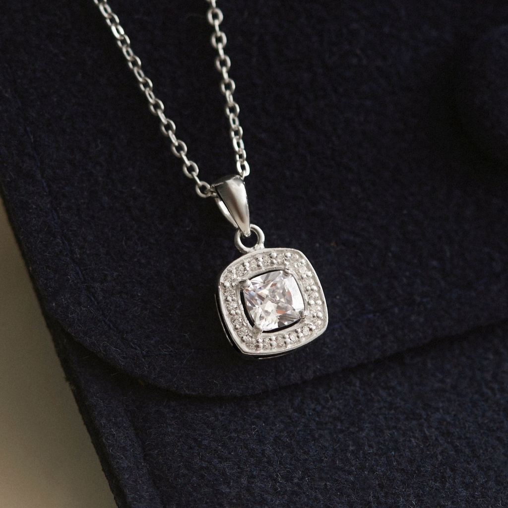 THÔNG TIN DÂY CHUYỀN BẠC 925 MẶT VUÔNG ĐÍNH ĐÁ SQUARE HALO