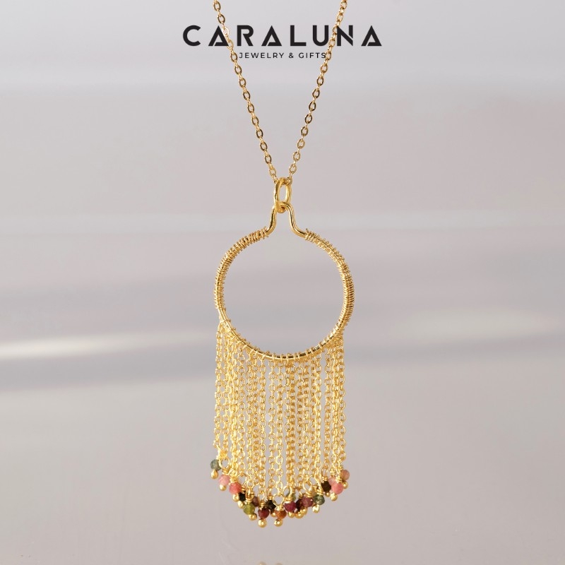 Dây chuyền mặt tròn tua rua đính đá Tourmaline tự nhiên |