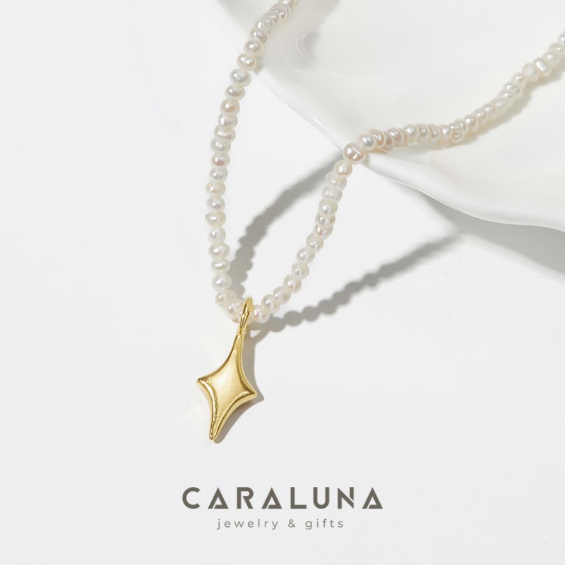 10. Dây Chuyền Bạc 925 Cara Luna Chuỗi Ngọc Trai Đính Mặt Sao 4 Cánh Star Pearl