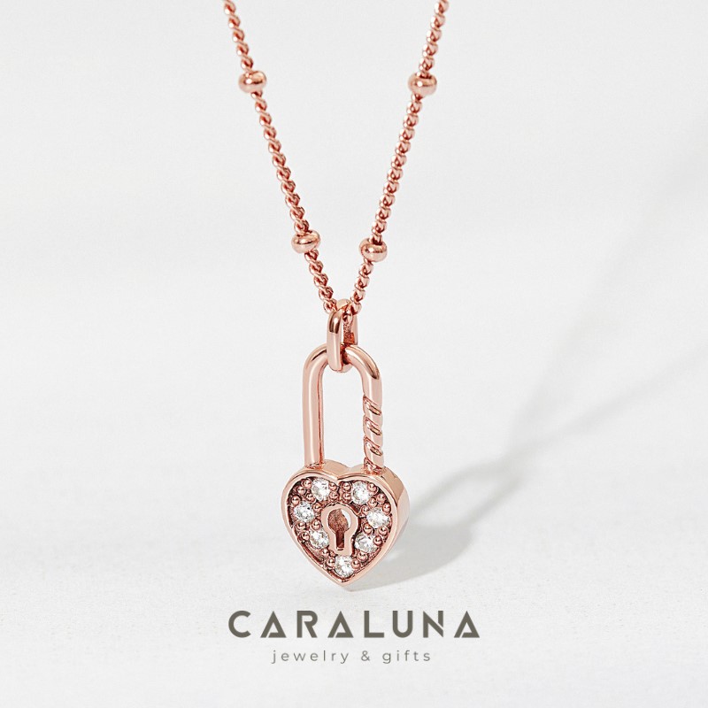 8. Dây Chuyền Bạc 925 Cara Luna Ổ Khóa Trái Tim Đính Đá Heart Lock