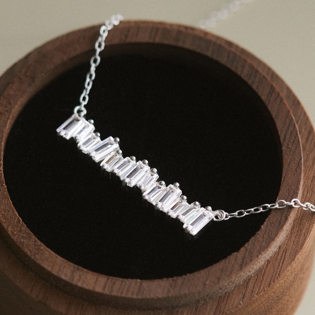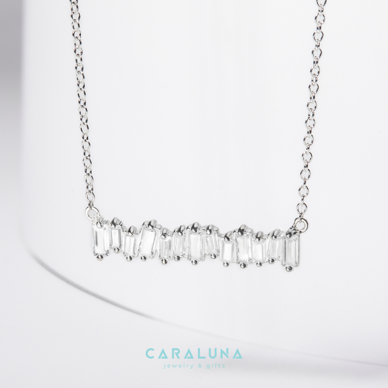 Dây Chuyền Bạc 925 Đính Đá Chữ Nhật được chế tác từ bạc Ý 925 cao cấp, có thể xi vàng hoặc hồng 18K. Thiết kế gồm 13 viên đá CZ dáng chữ nhật xếp zigzag tinh xảo, tạo hiệu ứng lấp lánh nổi bật và rất bắt sáng. Sản phẩm mang ý nghĩa tỏa sáng và lan tỏa năng lượng tích cực, phù hợp với những cô nàng yêu thích phong cách hiện đại, thanh lịch. Đeo hàng ngày hay khi hẹn hò, dự tiệc đều đẹp. Có thể chọn làm quà tặng ý nghĩa dành cho người bạn trân quý. Phối riêng để tôn nét sang trọng hoặc layer cùng dây mảnh để tăng độ cuốn hút cho outfit.