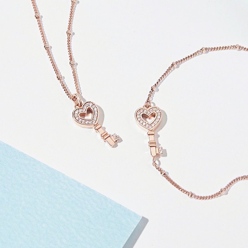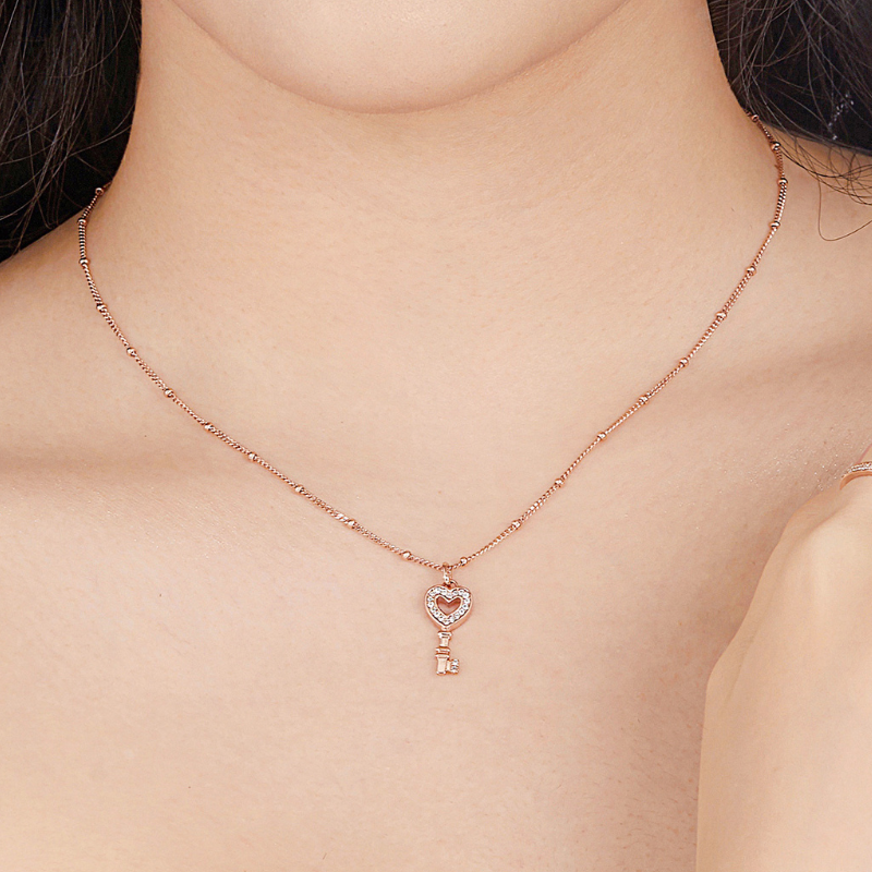 Dây chuyền gắn mặt charm hình chìa khóa trái tim đính đá