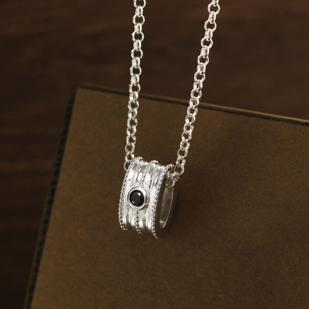 Dây Chuyền Nam Bạc 925 Mặt Ống Trụ Đính Đá Đen Tube Necklace - VYN73 từ Cara Luna được chế tác từ bạc Ý 925 chuẩn định lượng, kết hợp đá đen huyền bí. Thiết kế tối giản với mặt ống trụ gợn sóng tinh xảo, đính đá trung tâm, mang ý nghĩa sức mạnh nội tại và sự tinh tế nam tính. Phù hợp cho quý ông yêu thích phong cách hiện đại, lịch lãm. Sản phẩm lý tưởng đeo hàng ngày, họp hành hoặc làm quà tặng sinh nhật, kỷ niệm. Dễ phối cùng áo sơ mi đen hoặc vest xám để tôn lên vẻ mạnh mẽ, sang trọng.