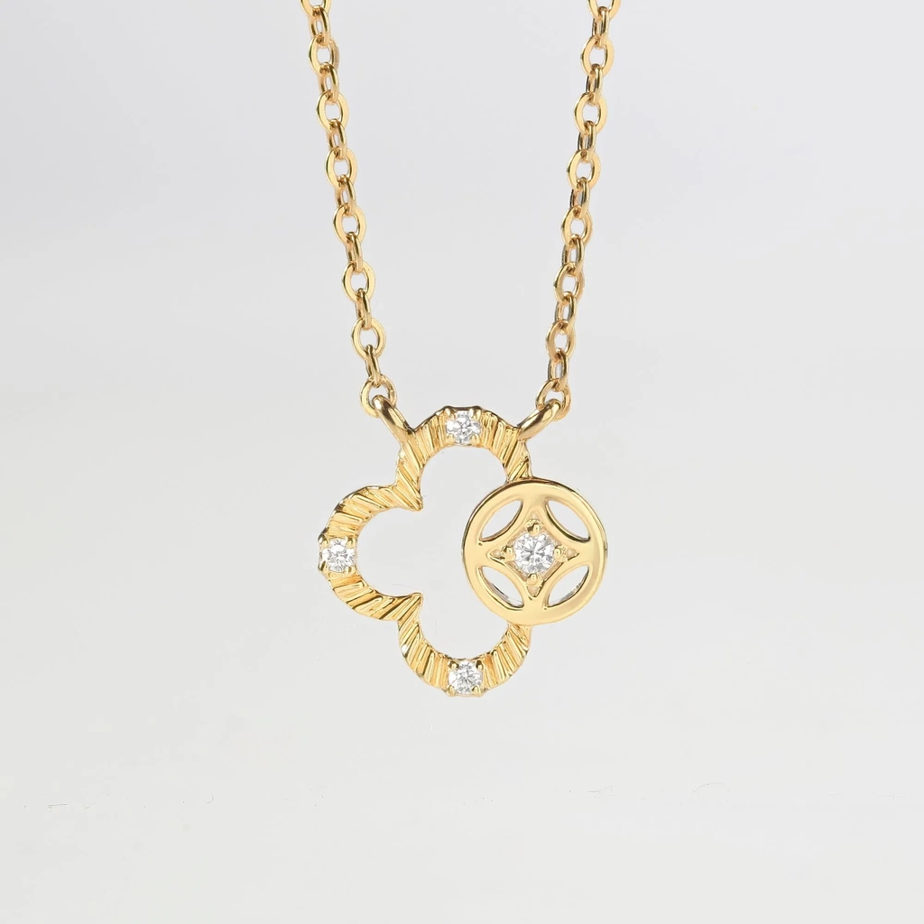 Dây chuyền được chế tác tinh xảo với charm hình kim tiền tròn đầy đặn, khắc họa họa tiết sóng nước mềm mại, viền charm đính các viên Moissanite lấp lánh, tạo hiệu ứng rực rỡ và sang trọng. Dây vàng 10K mảnh mai ôm nhẹ quanh cổ, mang lại vẻ thanh lịch và tinh tế. |