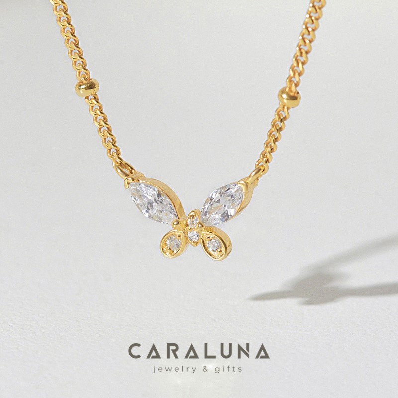 1. Dây Chuyền Bạc 925 Cara Luna Xích Bi Mặt Bướm Đính Đá Dainty Butterfly