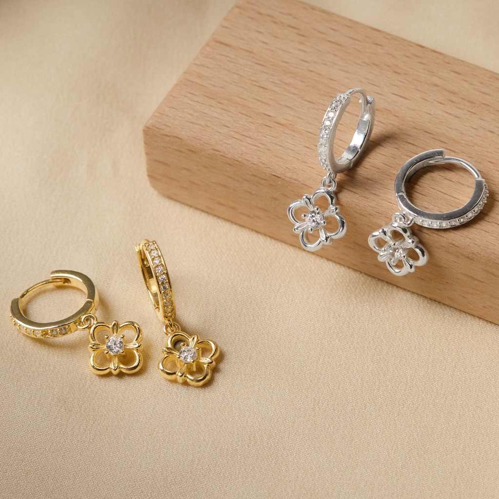 Hoa tai bạc 925 Lucky Clover hoop drop nổi bật với charm cỏ 4 lá thả nhẹ, tượng trưng cho may mắn và niềm vui. Thiết kế thanh thoát, chuyển động mềm mại giúp gương mặt thêm rạng rỡ. Phù hợp với phụ nữ yêu sự lãng mạn, lý tưởng làm quà tặng dịp Valentine, sinh nhật hoặc hẹn hò.
