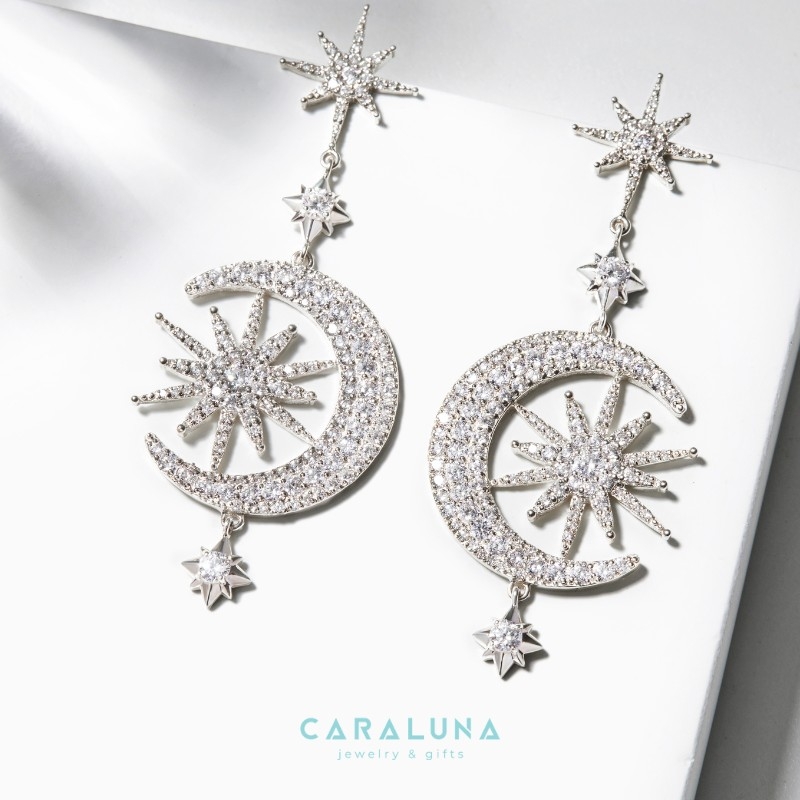 THÔNG TIN HOA TAI BẠC 925 DÁNG THẢ TRĂNG SAO ĐÍNH ĐÁ NỮ HOÀNG ĐÊM TIỆC - APHRODITE