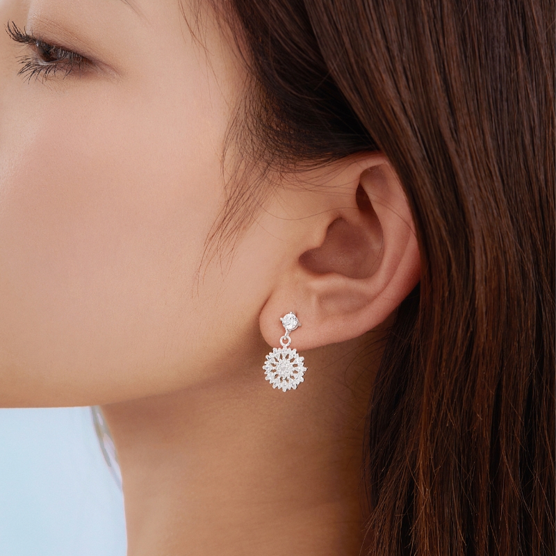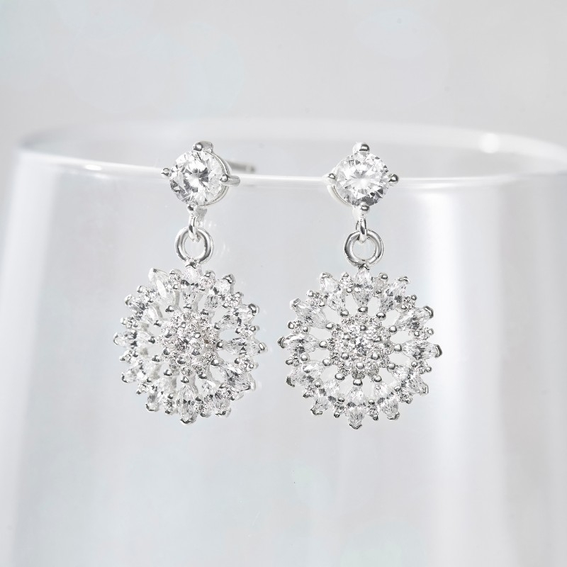 Dáng thả drop earrings charm hoa tuyết đính đá lấp lánh |
