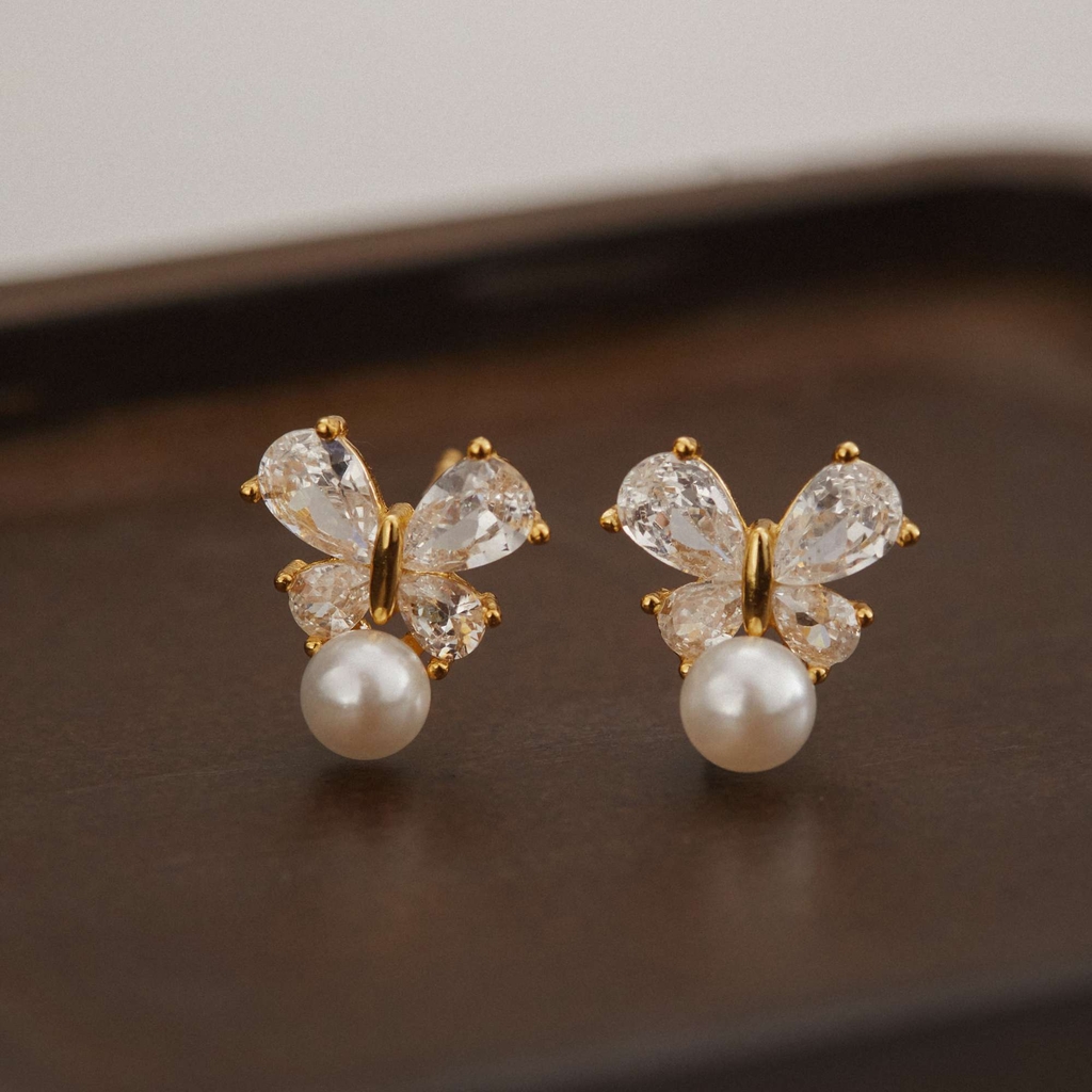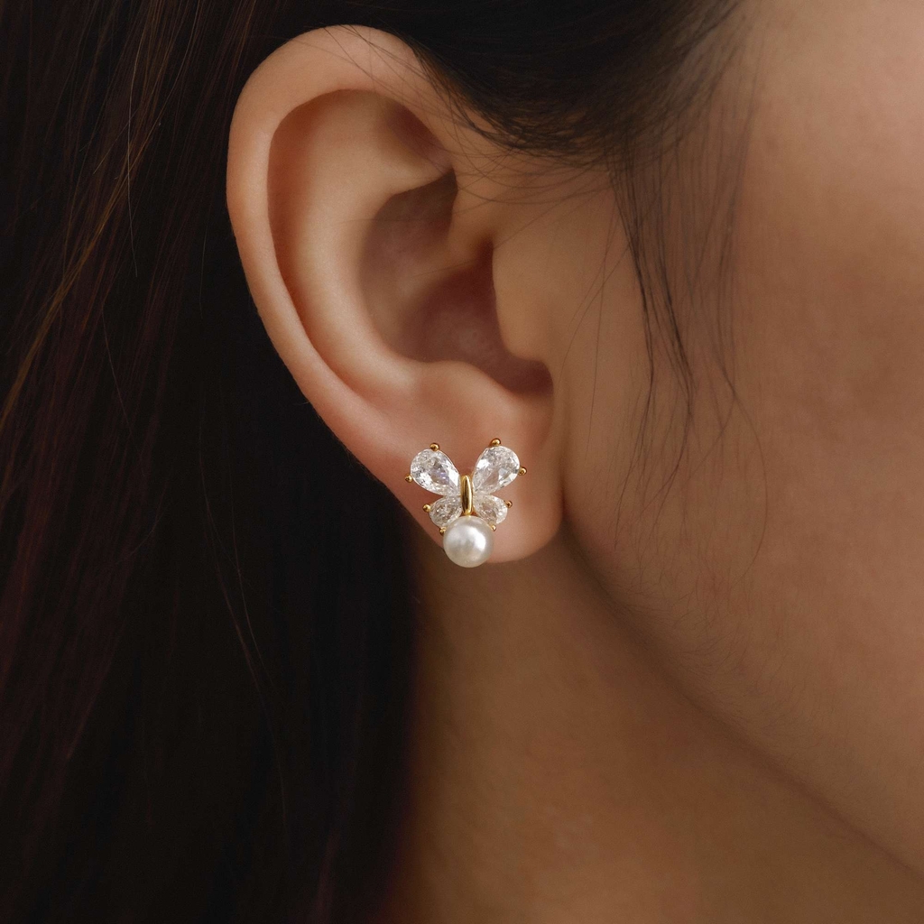 Thiết kế nơ bướm uốn lượn từ bạc 925 mạ vàng, đính đá cz hình giọt nước và khảm trai tự nhiên óng ả. Kiểu dáng thanh thoát, nhẹ nhàng, tạo vẻ lãng mạn, duyên dáng. Phong cách hiện đại, phù hợp sự tinh tế, nữ tính.n phẩm |