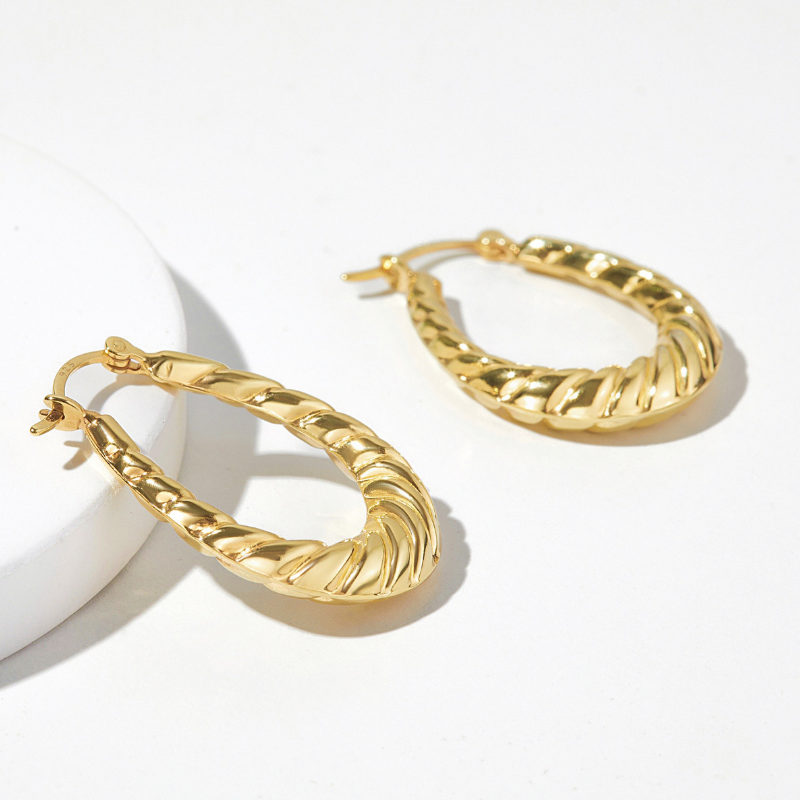 Hoa Tai Bạc 925 Dáng Hoop Xoắn Lớn Puff Twist