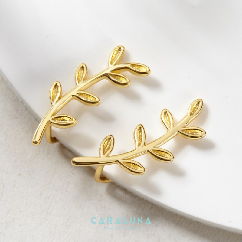 Hoa Tai Bạc 925 Cara Luna Dáng Leo Climber Kẹp Vành Lá Nguyệt Quế