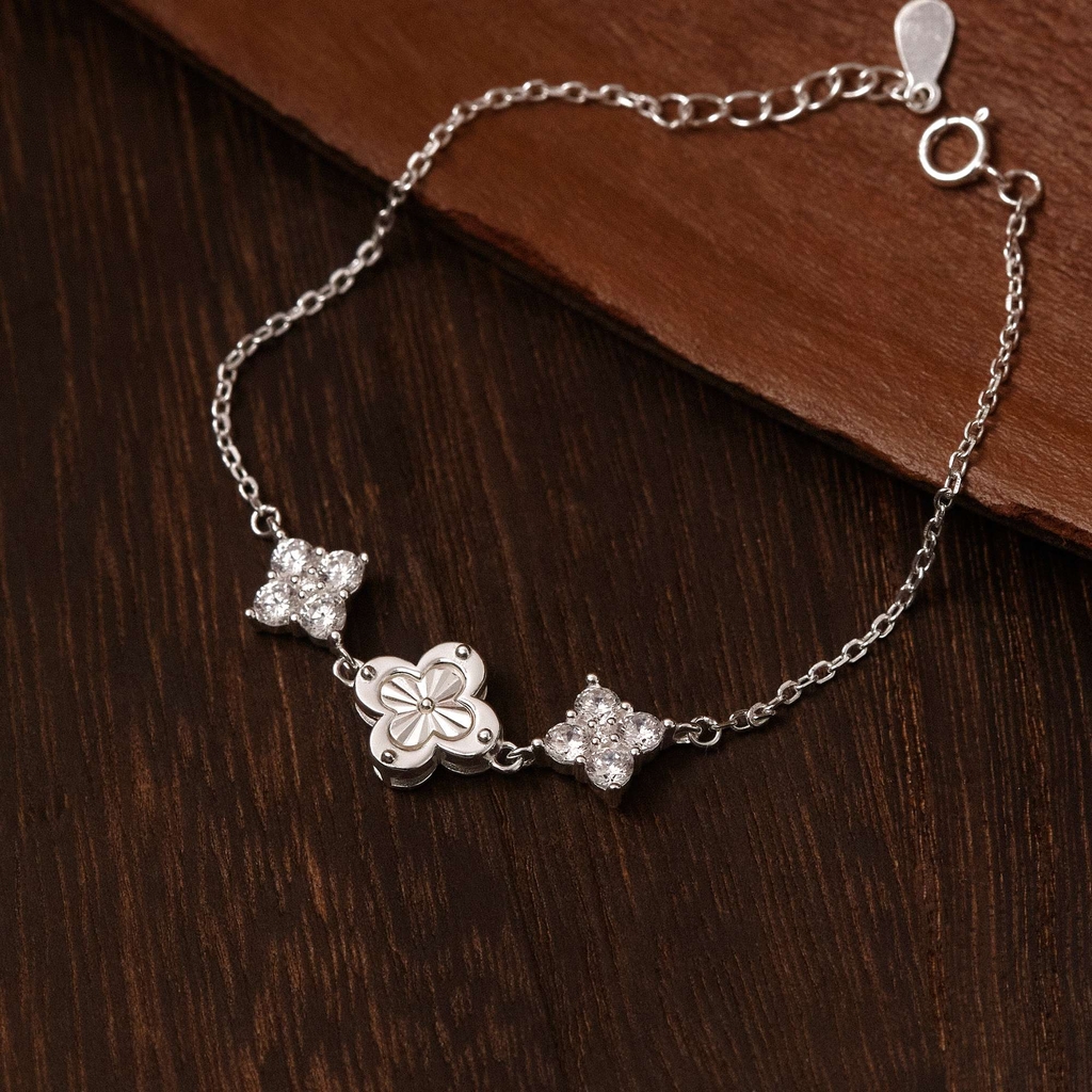 THÔNG TIN LẮC TAY BẠC 925 CỎ 4 LÁ CHẠM KHẮC SANG TRỌNG ĐÍNH ĐÁ