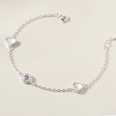 Thiết kế thanh thoát, chuỗi bạc 925 mảnh mai xen kẽ charm trái tim đính đá ruby đỏ lấp lánh. Tùy chọn mạ vàng hoặc hồng, tạo vẻ sang trọng. Kiểu dáng tinh xảo, nhẹ nhàng, ôm sát cổ tay, mang phong cách lãng mạn, nữ tính, phù hợp mọi dịp. |