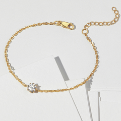 Lắc tay vàng 10K Shine Bright có thiết kế mảnh mai, điểm nhấn là viên đá lấp lánh ở giữa, tỏa sáng nhẹ nhàng nhưng đầy cuốn hút. Sự kết hợp giữa sắc vàng bóng và nét tinh tế trong từng chi tiết mang đến vẻ sang trọng, thanh lịch, giúp bạn nổi bật trong mọi dịp. |