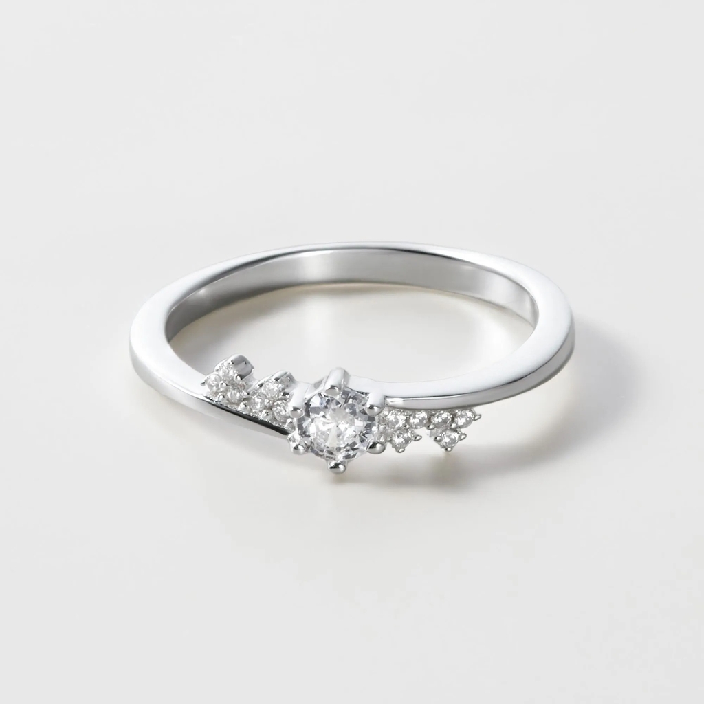 Nhẫn bạc 925 thiết kế dáng xoắn chéo tinh tế, nổi bật với viên đá chủ lấp lánh ở trung tâm, phản chiếu ánh sáng rực rỡ mỗi khi chuyển động, giúp tôn lên vẻ sang trọng, thanh lịch |