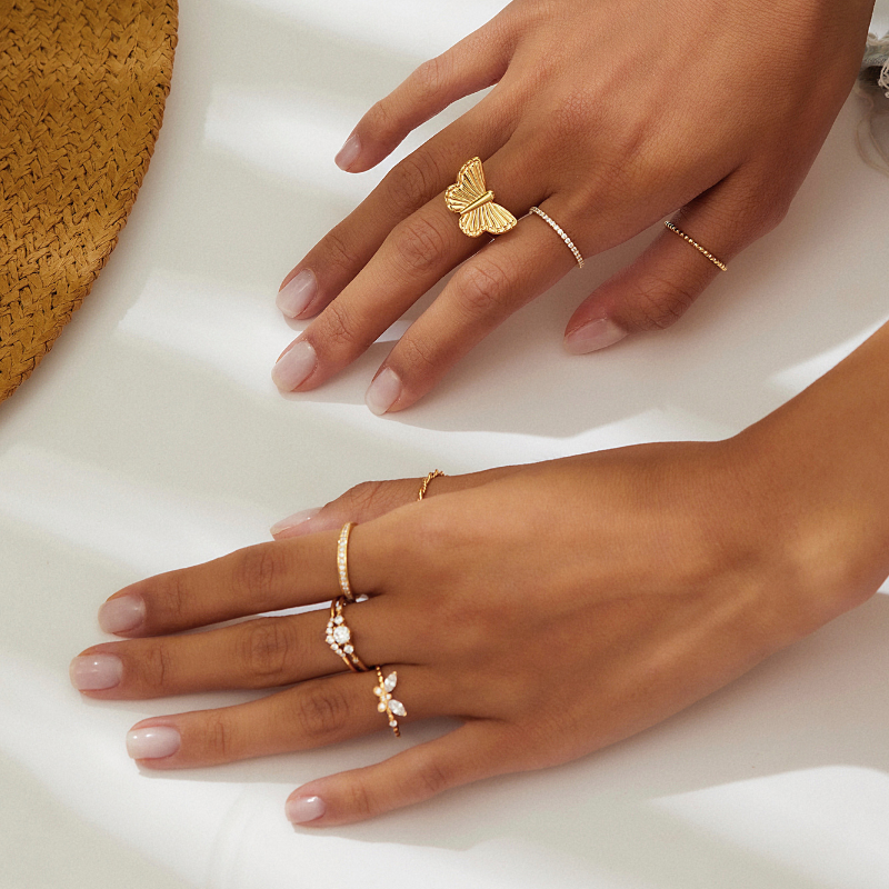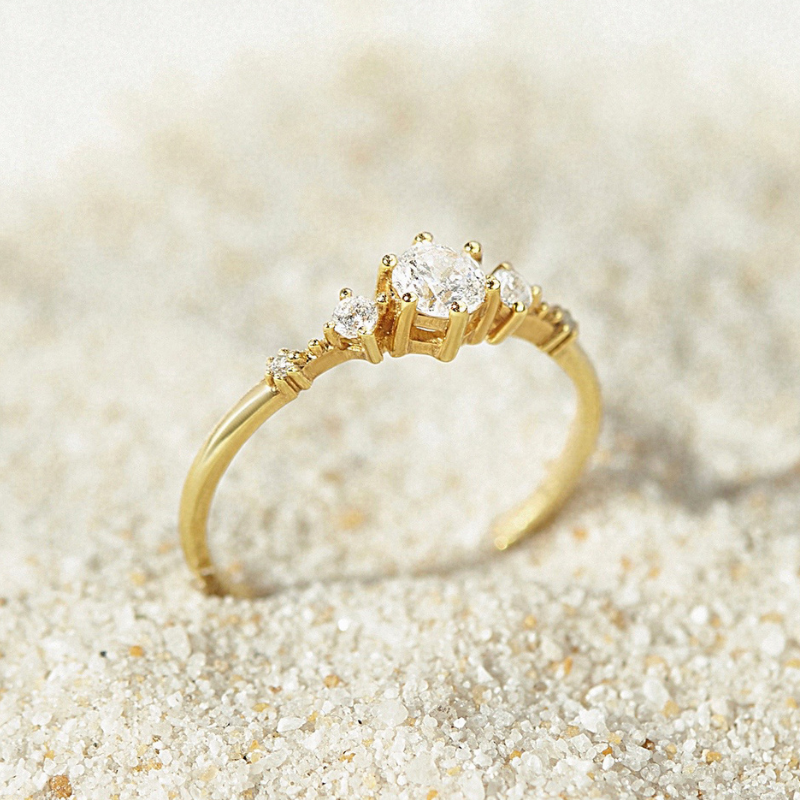 Nhẫn basic đính 5 đá lớn nhỏ xen kẽ |