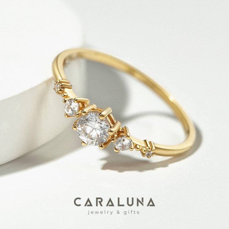 - Kiểu dáng: Nhẫn basic đính 5 đá lớn nhỏ xen kẽ