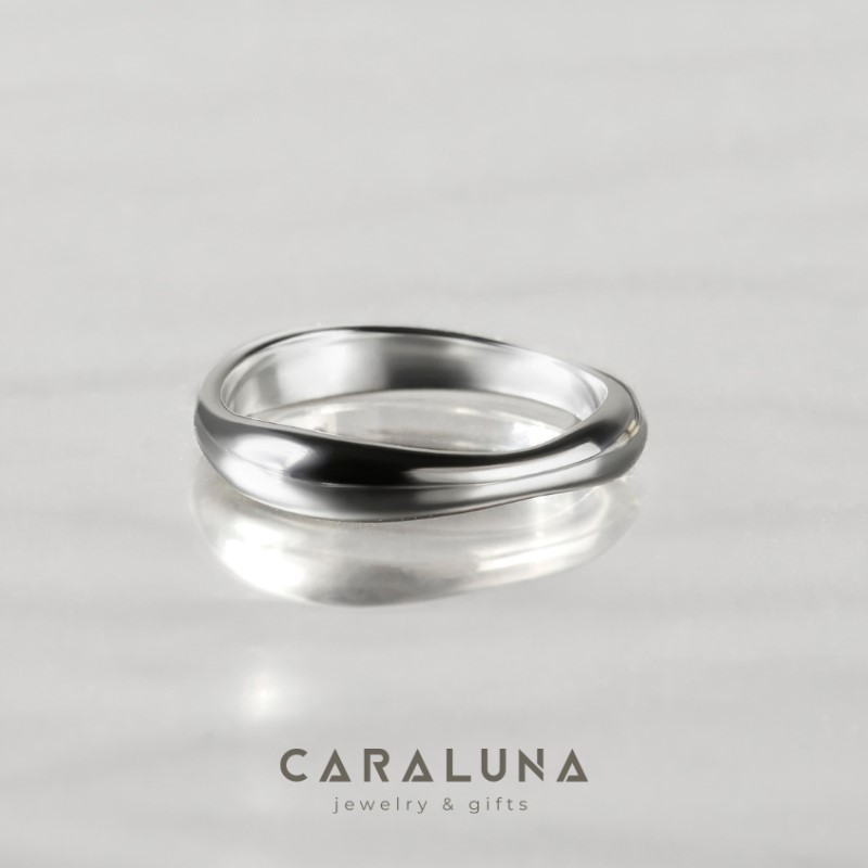 5. Nhẫn Bạc 925 Cara Luna Trơn Lượn Sóng Bản Dày Wave