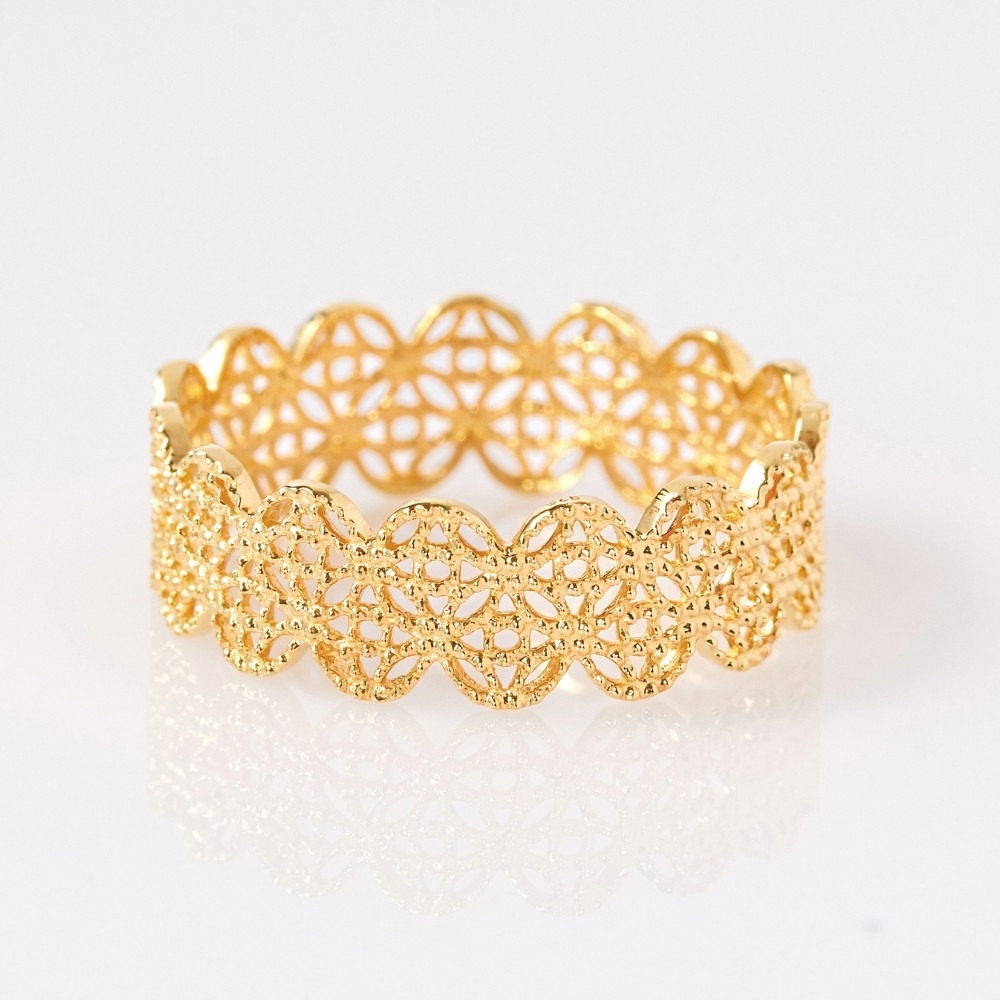Nhẫn bạc 925 mạ vàng 18K hình đồng tiền cổ tượng trưng cho tài lộc. Viền bi nhỏ tinh xảo tạo cảm giác dày dặn và sang trọng, kích thước nhỏ gọn dễ kết hợp cùng nhẫn mảnh. |