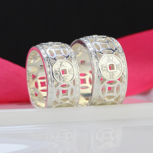 Nhẫn đôi bạc kim tiền bản to