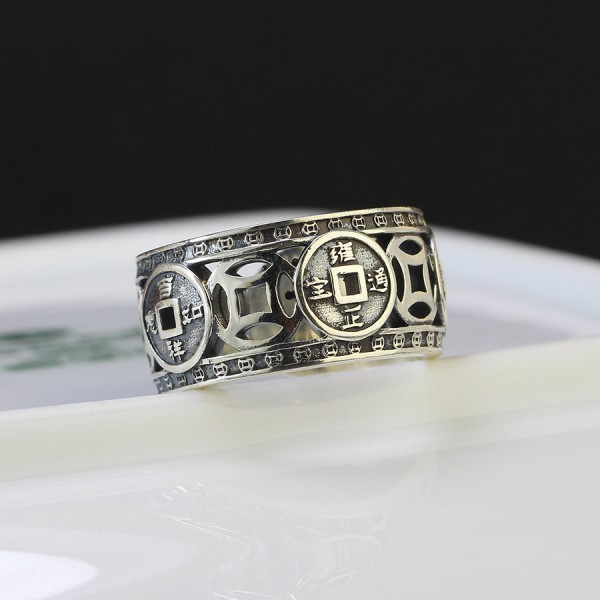 Nhẫn bạc nam kim tiền xi thái