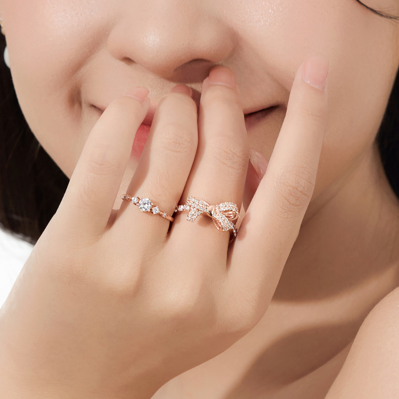 Nhẫn Nơ Bạc 925 Bow Winter Snow mang vẻ đẹp ngọt ngào lấy cảm hứng từ chiếc nơ mùa đông. Thiết kế nơ đính đá CZ lấp lánh kết hợp thân nhẫn mảnh mai mạ vàng hồng 18K tạo cảm giác nhẹ nhàng và thanh lịch. Dễ dàng mix cùng khuyên hoặc nhẫn bạc khác để tạo hiệu ứng stacking tinh tế, giúp phong cách thêm nổi bật và cuốn hút mỗi ngày. |