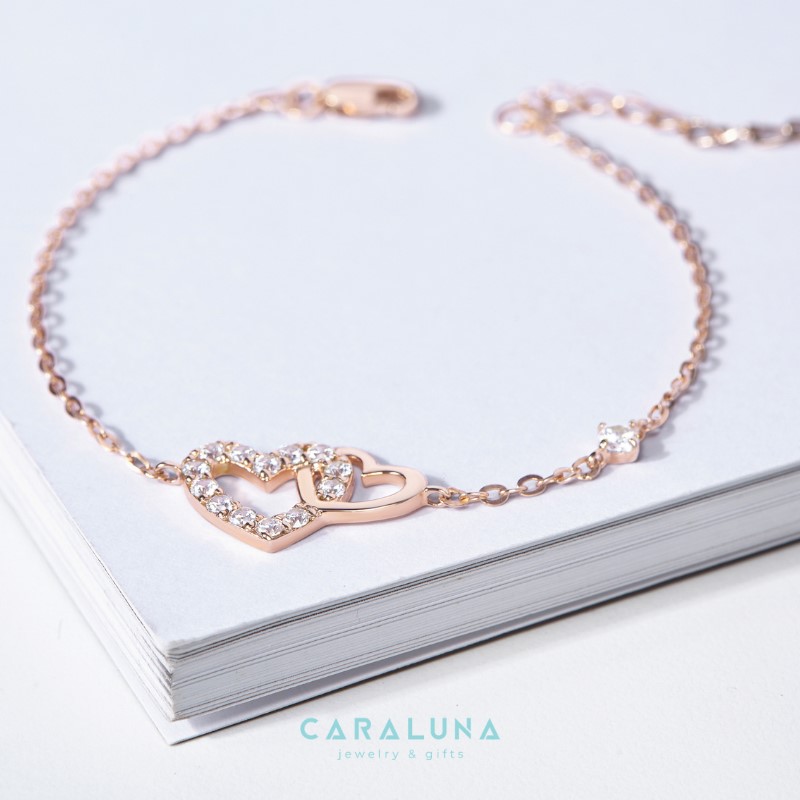 1.2 Lắc Tay Bạc 925 Cara Luna Hai Trái Tim Đính Đá Gắn Kết Heart To Heart