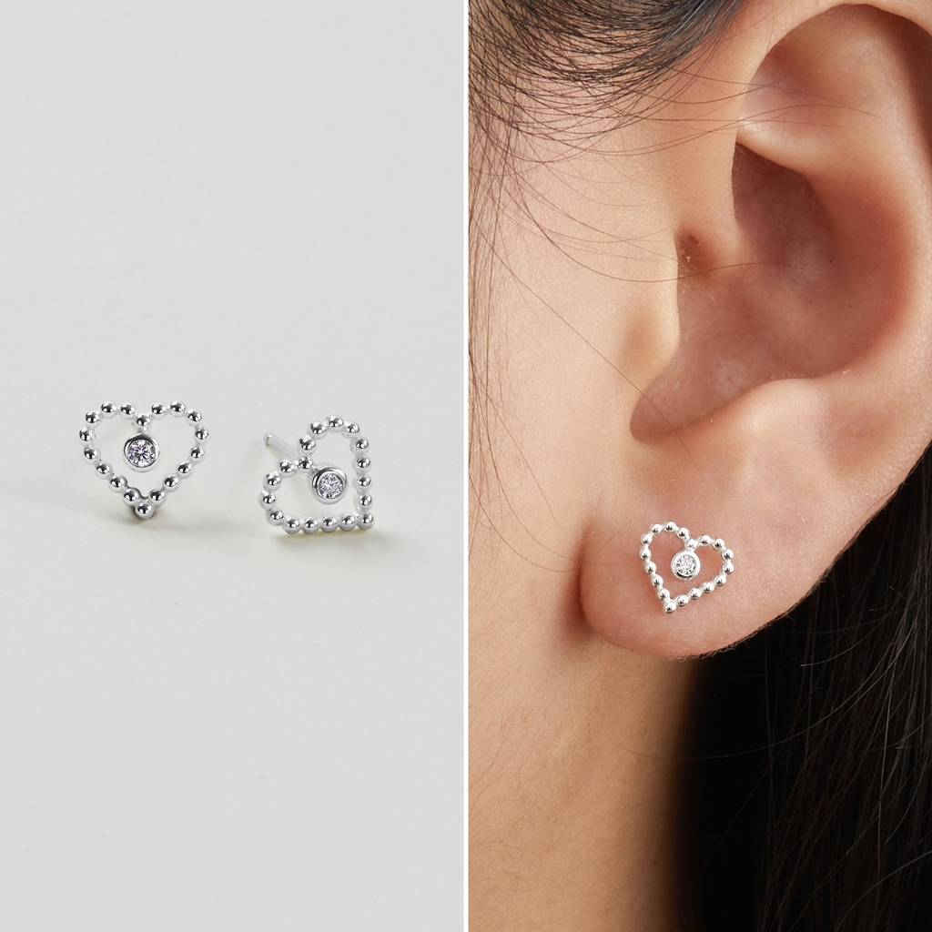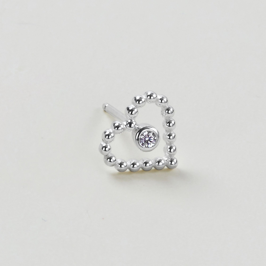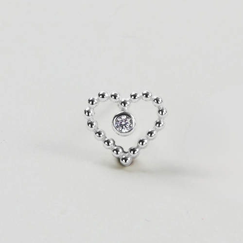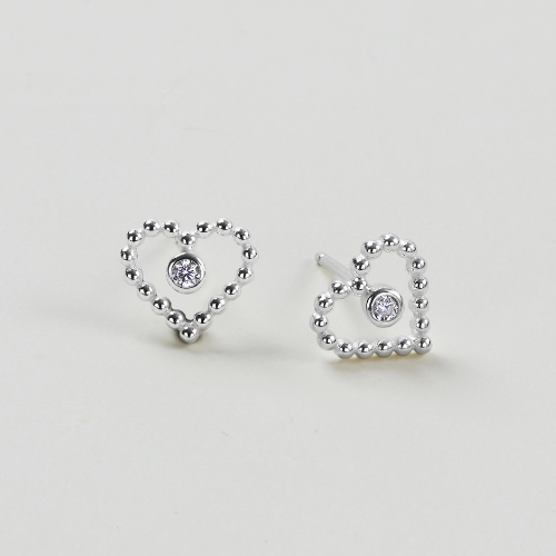 Bông tai nụ hình trái tim làm từ bạc 925 tinh tế, nổi bật với thiết kế nhỏ gọn, nhẹ nhàng. Viền trái tim được trang trí những hạt bi đều nhau, tạo cảm giác sang trọng, thanh lịch. Viên đá tròn lấp lánh ở giữa mang đến điểm nhấn quyến rũ, khiến đôi tai thêm nổi bật. Phù hợp để đeo hàng ngày hay trong những dịp đặc biệt, mang đến vẻ đẹp nữ tính và duyên dáng. |