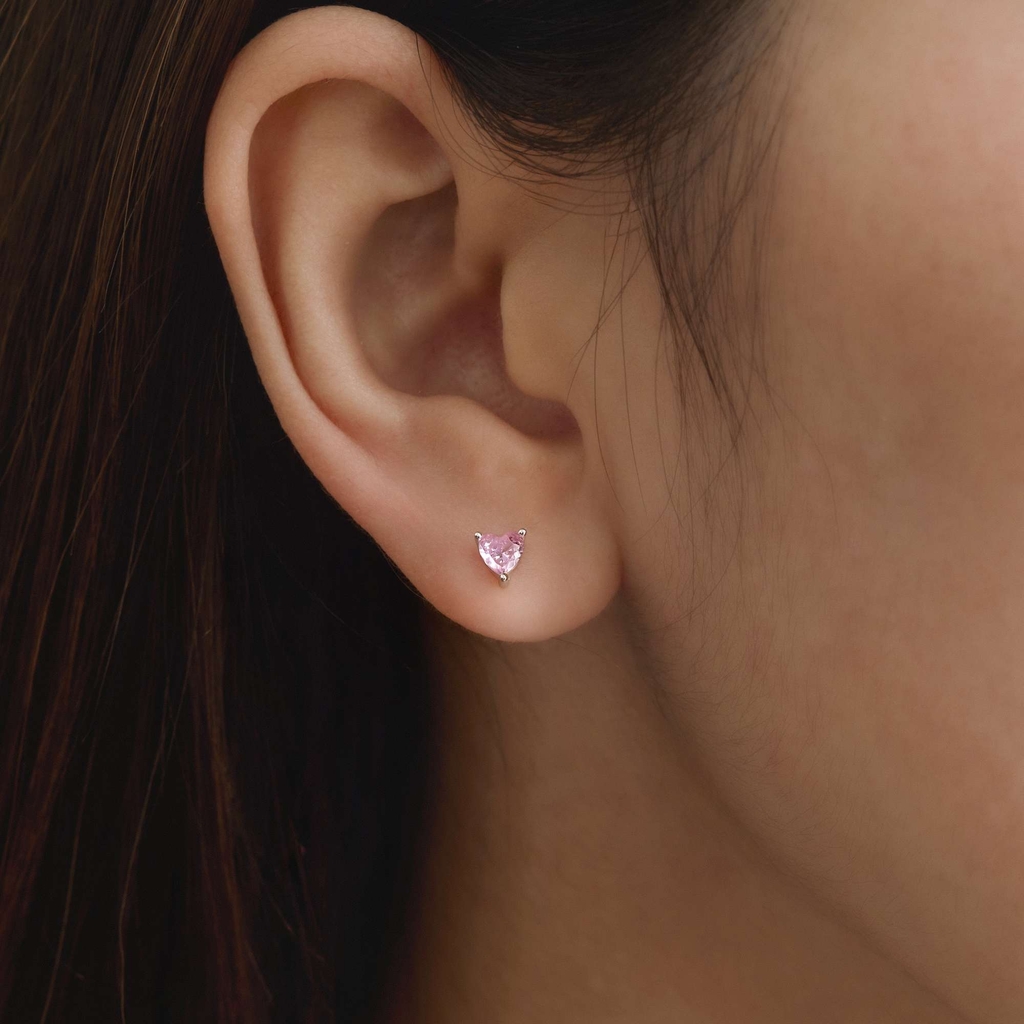 THÔNG TIN KHUYÊN TAI BẠC 925 FLAT BACK TRÁI TIM ĐÁ HỒNG