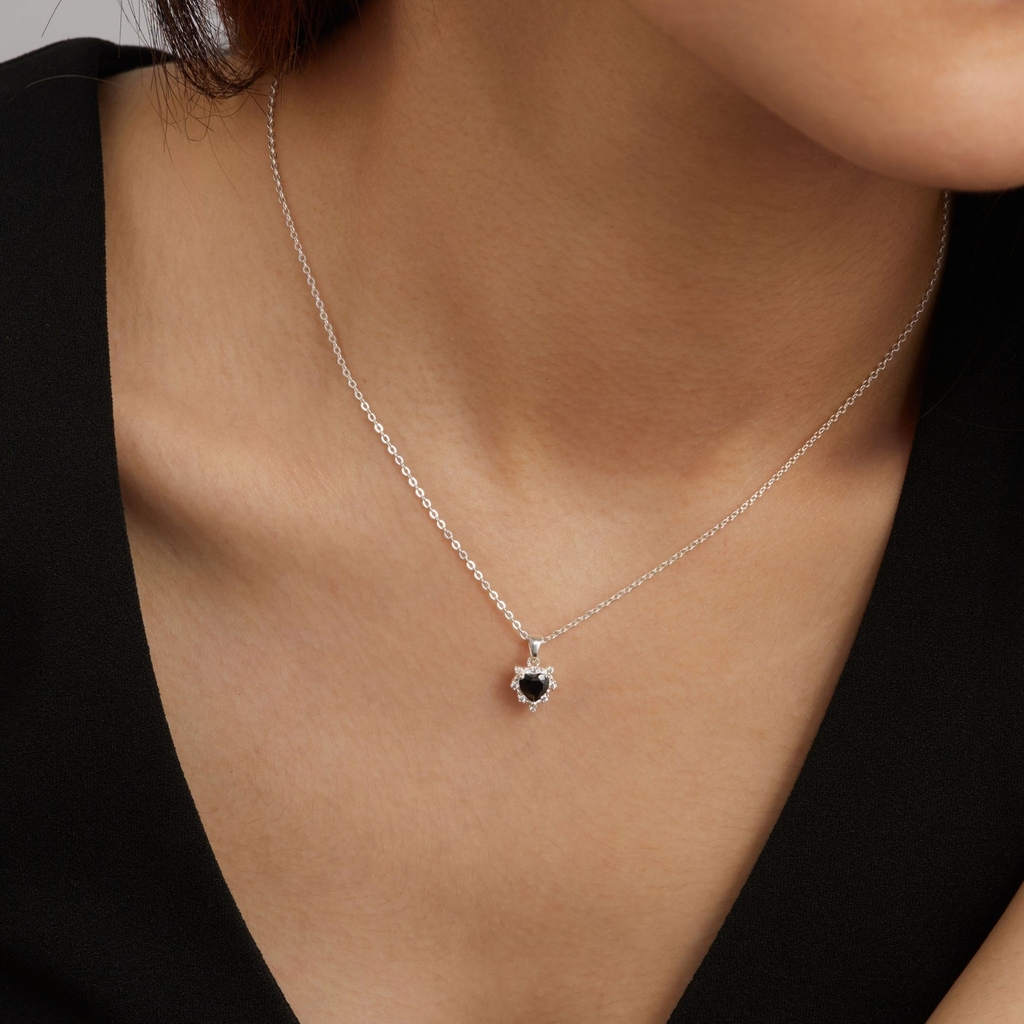 THÔNG TIN DÂY CHUYỀN BẠC 925 HÌNH TRÁI TIM NHỎ ĐÍNH ĐÁ ĐEN CARA LUNA - TINY HEART