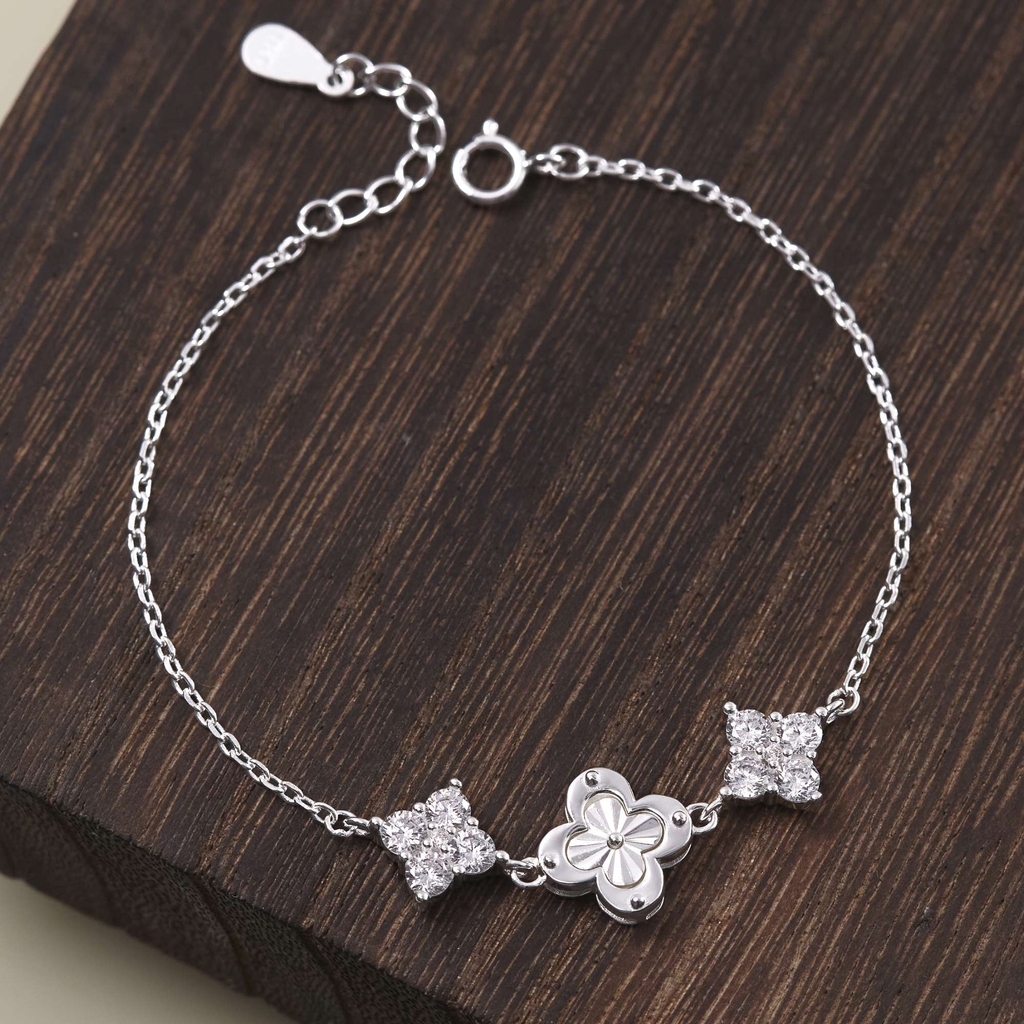THÔNG TIN LẮC TAY BẠC 925 CỎ 4 LÁ CHẠM KHẮC SANG TRỌNG ĐÍNH ĐÁ