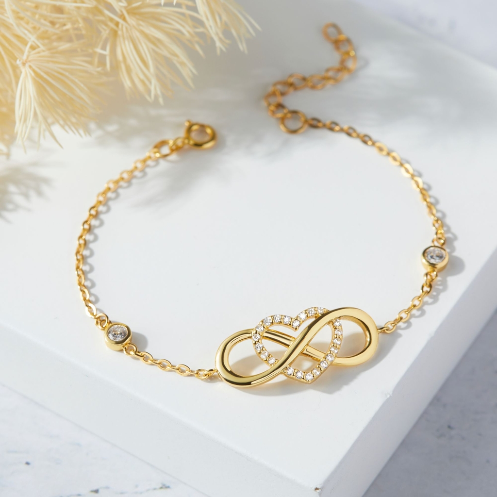 Lắc Tay Infinite Love chế tác từ bạc 925 cao cấp, thiết kế charm hình vô cực kết hợp trái tim tinh xảo. Trung tâm trái tim đính đá CZ lấp lánh, dây xích mảnh mai trang trí hạt đá nhỏ hai bên, tạo điểm nhấn duyên dáng. Biểu tượng tình yêu vĩnh cửu, phù hợp làm quà ý nghĩa. |