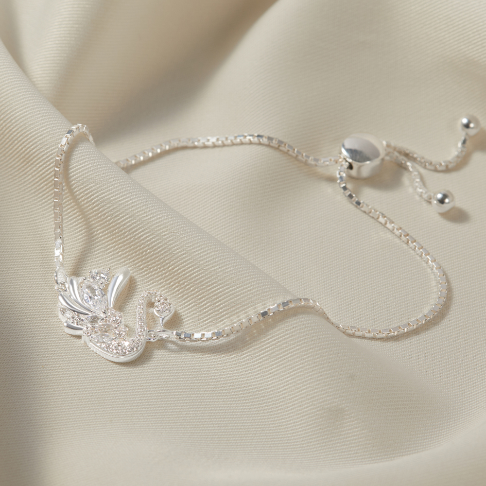 Lắc tay Dây Rút Bạc 925 Hình Thiên Nga Đính Đá Lấp Lánh Pretty Swan nổi bật với thiết kế thiên nga duyên dáng, thân và cổ lấp lánh ánh sáng nhờ đá sáng tinh tế, cánh được viền đá tinh xảo. Dây lắc mảnh mai, dễ điều chỉnh, mang đến vẻ thanh lịch, nữ tính, thích hợp đeo hàng ngày hoặc kết hợp cùng các lắc khác tạo phong cách riêng. |