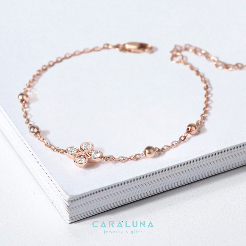 Bên cạnh ý nghĩa tích cực, vòng tay cỏ 4 lá nhà Cara Luna còn được chế tác tinh xảo, tỉ mỉ, gắn đá sáng rực. Đây hứa hẹn sẽ là món quà trang sức 20/10 nàng siêu ưng!
