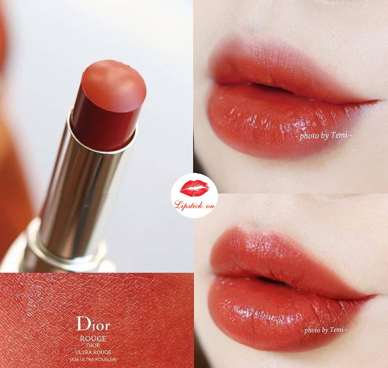 Dior không chỉ nổi tiếng trong lĩnh vực thời trang cao cấp mà còn được các chị em đánh giá cao với các dòng son môi mang thương hiệu này. Thỏi son Dior 436 Ultra Trouble, với gam màu cam đất sang trọng, đem lại cho phái đẹp cảm giác lịch lãm không tưởng. Bạn sẽ đắm chìm trong sự sang trọng từ thiết kế đến chất son, cùng với thành phần tự nhiên lành tính giúp bảo vệ và dưỡng ẩm cho đôi môi.