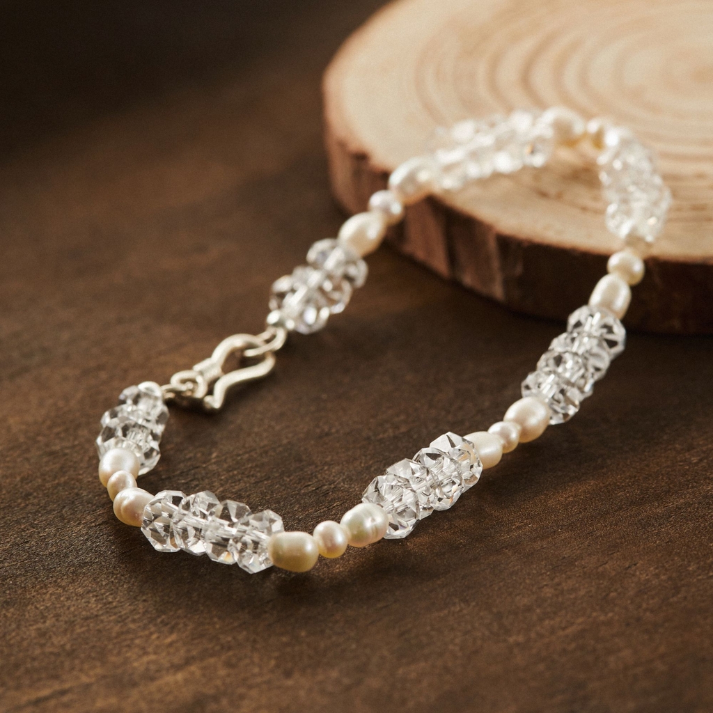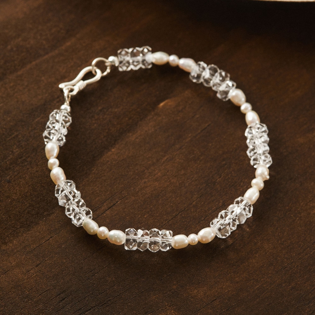 Bạc 925 mix trai thật nước ngọt + đá thạch anh trắng tự nhiên |
