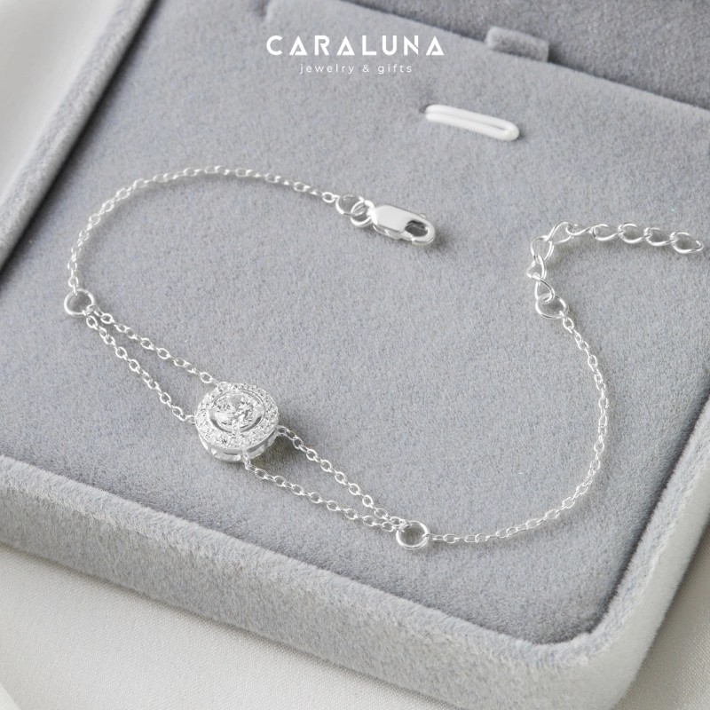 Vòng tay gắn mặt charm tròn - charm bracelet; mặt vòng tay hình tròn gắn đá CZ trắng |