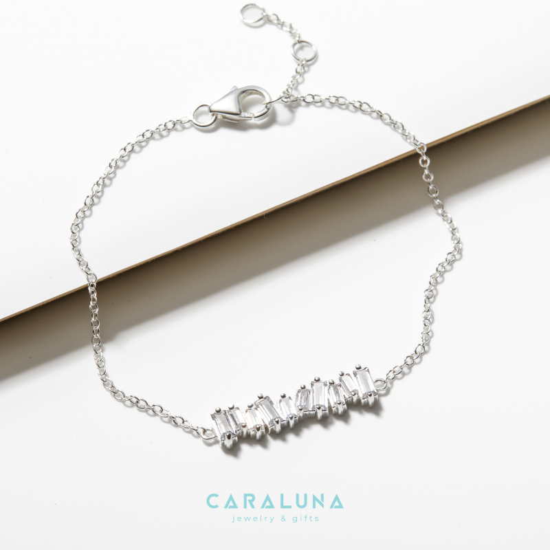 Vòng tay gắn mặt charm đính 10 viên đá CZ trắng hình chữ nhật |